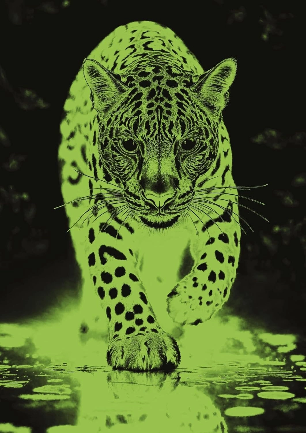 Objavte zábavu, ktorá žiari aj po zotmení: neónové fluorescenčné puzzle s motívom modrého jaguára svieti v tme a vytvára magickú atmosféru. Špeciálna neónová farba sa cez deň nabije svetlom a v noci niekoľko hodín žiari – ideálne na pokojné večery aj relax pri skladaní 1000 dielikov.