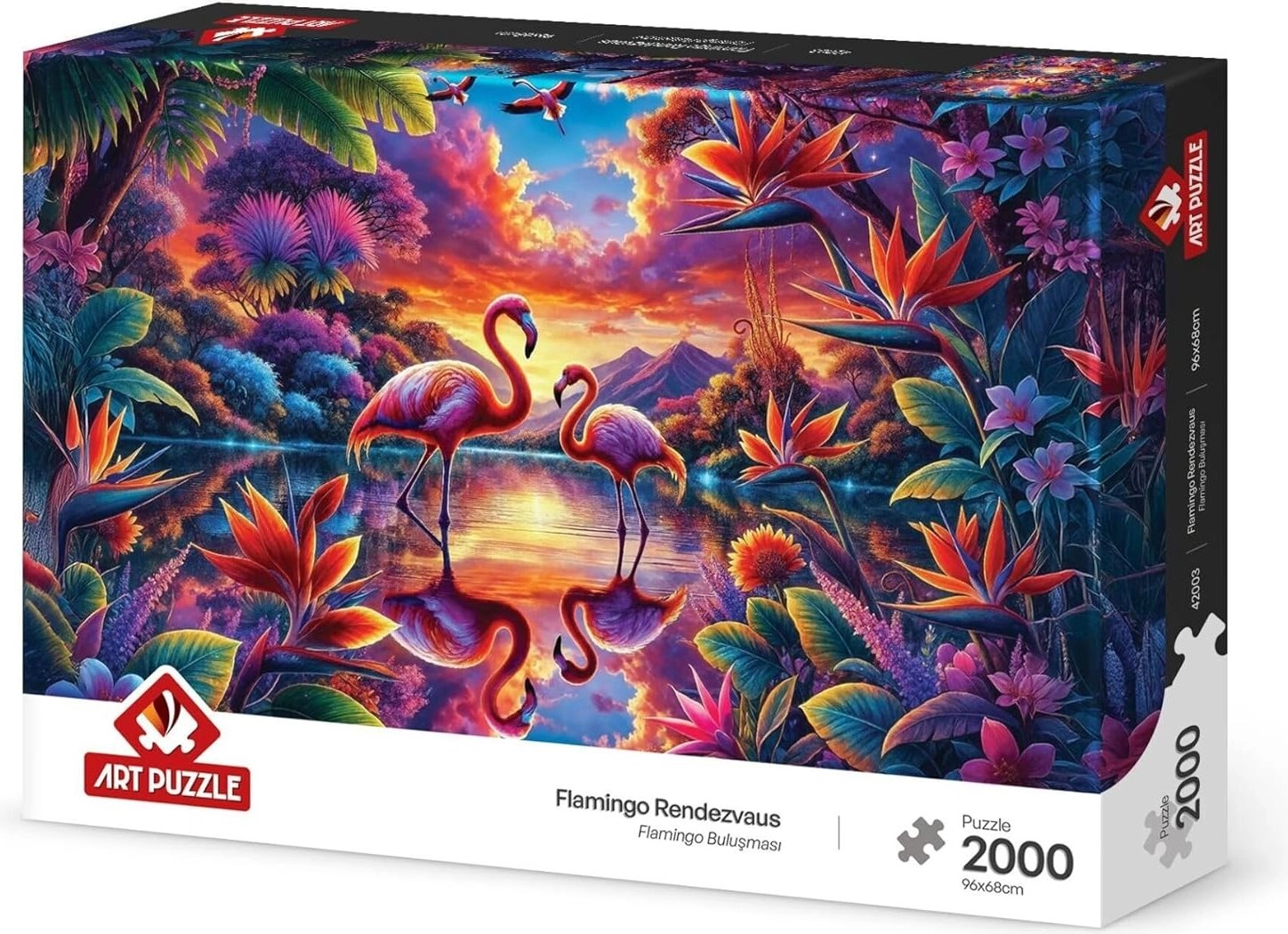 Užite si hodiny relaxu s puzzle „Stretnutie plameniakov“ s 2000 dielikmi, ktoré po zložení vytvoria pôsobivý obraz s rozmerom 96 × 68 cm. Kvalitné dieliky presne zapadajú a výrobca ART PUZZLE ponúka aj službu zaslania chýbajúceho dielika.