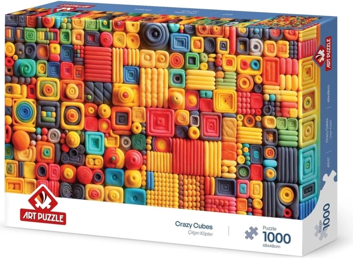 Toto kvalitné puzzle s originálnym motívom bláznivých kociek poteší každého milovníka skladania. Vďaka 1000 precízne vyrezaným dielikom si užijete hodiny relaxu aj tréningu koncentrácie. Po zostavení vznikne obraz s rozmermi cca 68 × 48 cm, ktorý sa skvele hodí aj na zarámovanie.