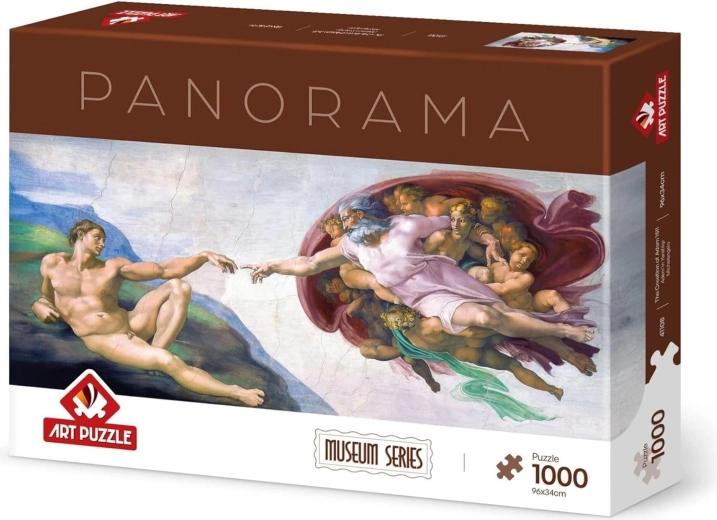 Užite si umelecký zážitok s panoramatickým puzzle inšpirovaným freskou Stvorenie Adama. Skladačka o 1000 dielikoch a rozmeroch po zložení cca 96 × 34 cm poteší milovníkov umenia aj skúsených puzzlistov. Ideálne na relax, precvičenie trpezlivosti a štýlovú dekoráciu interiéru.