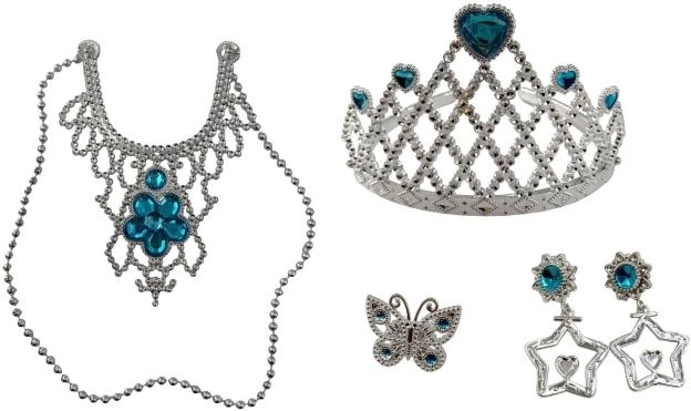 - Kompletná výbava – korunka, náhrdelník, náušnice a prsteň.