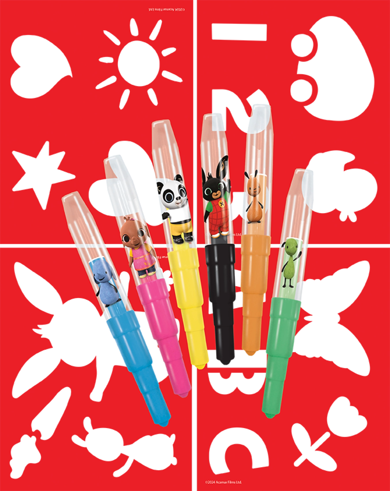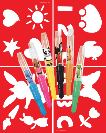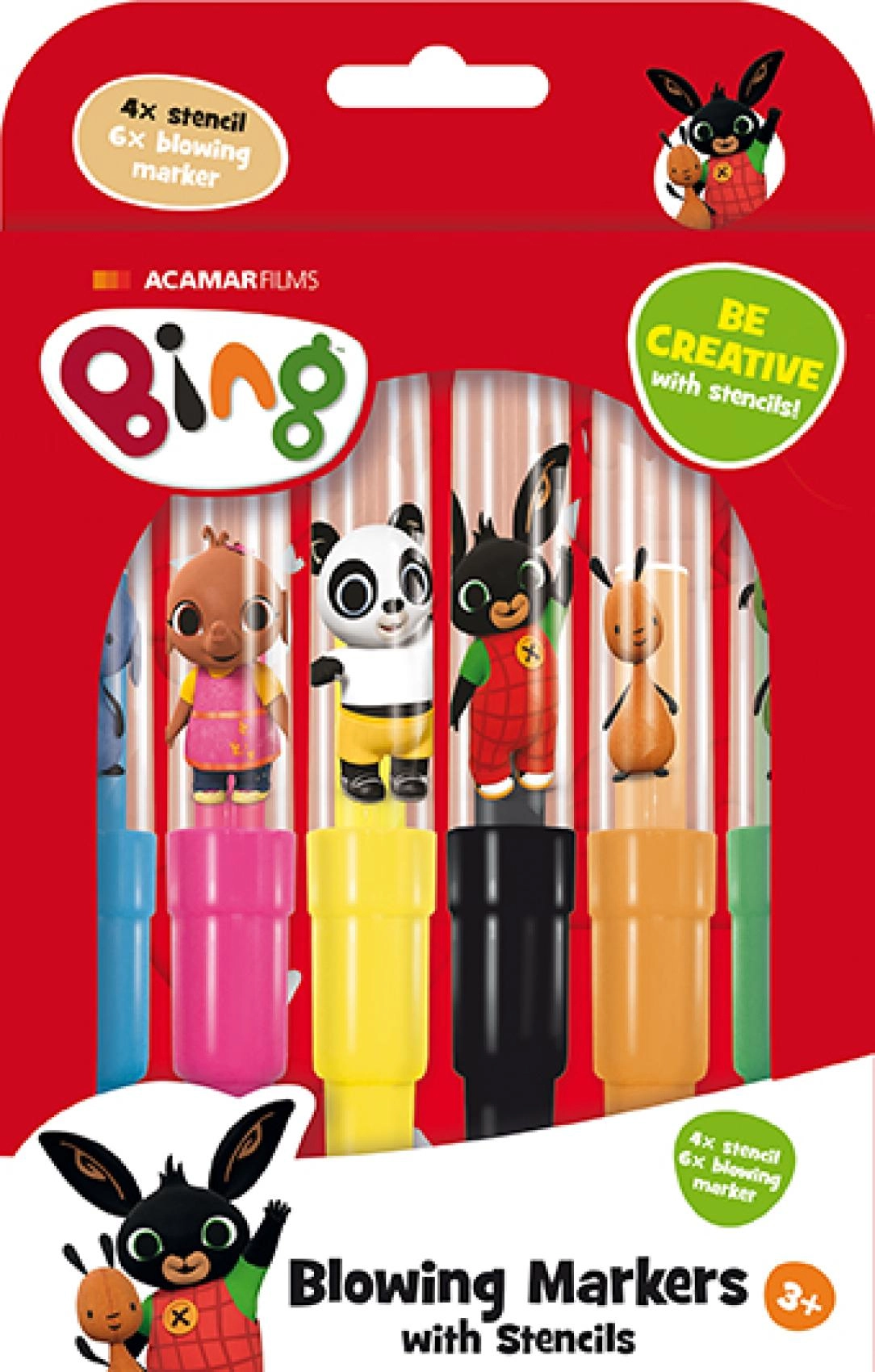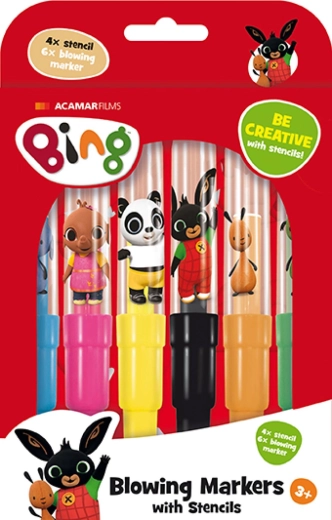Objavte zábavné tvorenie s fúkacími fixkami a šablónami s motívmi ZAJKO BING. Sada obsahuje 6 farebných fúkacích fixiek a 4 papierové šablóny, s ktorými deti ľahko vytvoria efektné sprejové obrázky. Ideálne na rozvoj kreativity, jemnej motoriky a fantázie.