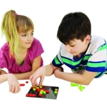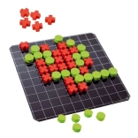 Hra obsahuje drevené herné kamene v tvare koliesok Ø 1,5 cm a krížikov 1,5x1,5 cm. Všetky kamene sú podlepené magnetom, čo uľahčuje ich použitie na tabuľke.