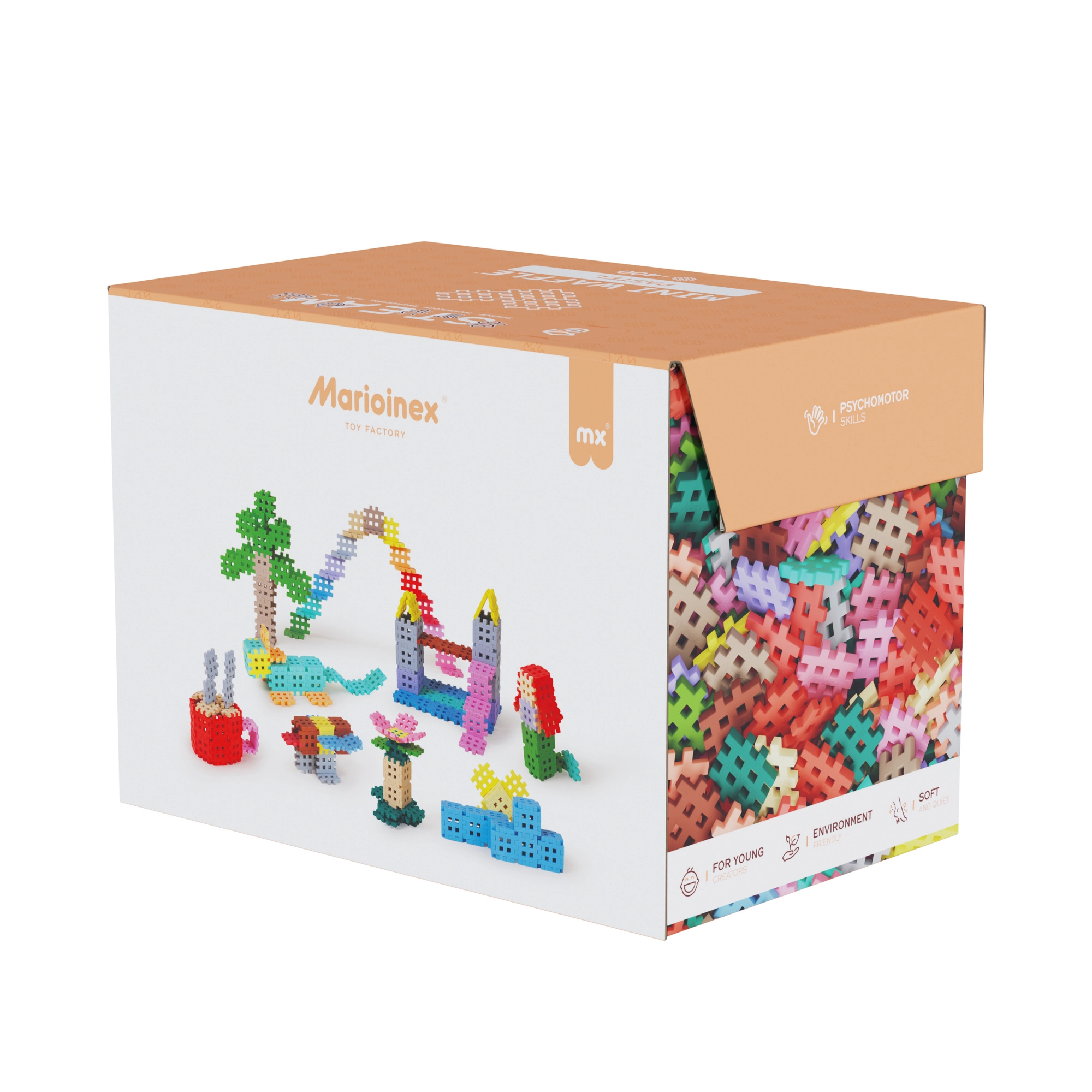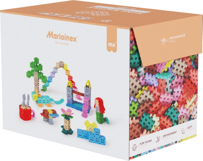 Veľký počet pastelových dielikov podporuje slobodné tvorenie – od jednoduchých tvarov po prepracované 3D modely. Skvelé na samostatnú aj spoločnú hru.