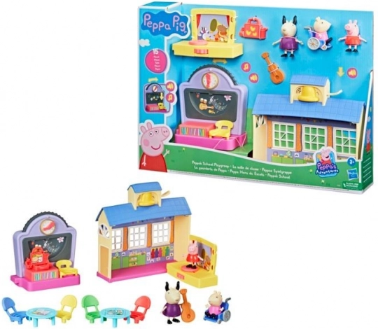 Herná sada Prasiatko Peppa Školské ihrisko umožňuje deťom zažiť kreatívnu a vzdelávaciu zábavu. Ponúka postavičky a príslušenstvo, ktoré inšpirujú k rozprávaniu príbehov a rozvoju imaginatívnej hry.