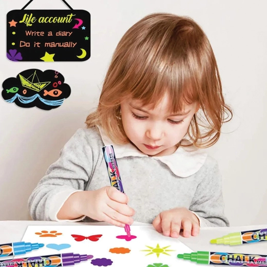 Perfektná voľba pre školy, kancelárie, kaviarne aj domácu organizáciu. Skvelo nahradia klasickú prašnú kriedu, zvýraznia nápisy na výkladoch či menu tabuľkách a podporia kreativitu detí aj dospelých.