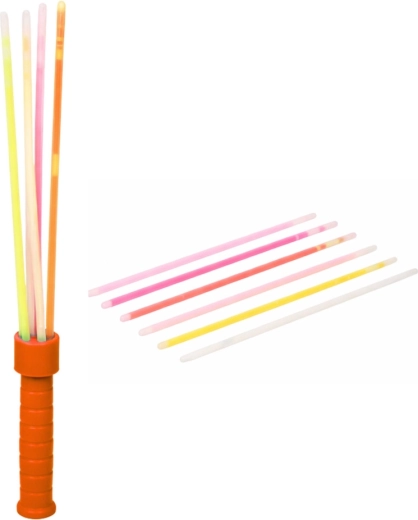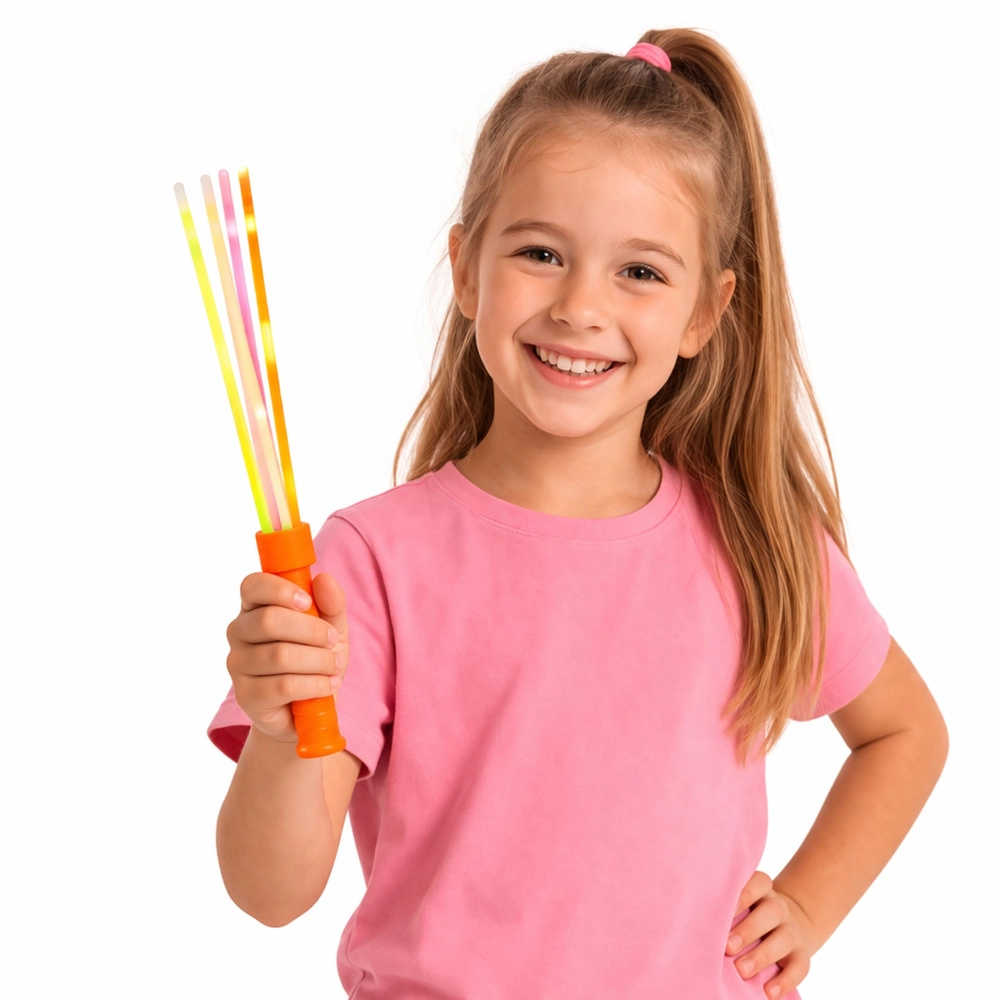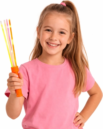 Vytvorte výrazný svetelný efekt s paličkou, do ktorej možno súčasne vložiť až 6 glow stick tyčiniek. Aktivácia prebieha jednoduchým ohnutím, po ktorom tyčinky vyžarujú jasné neónové svetlo viditeľné v tme – bez nutnosti batérií či nabíjania.