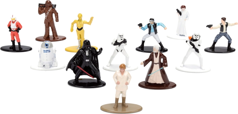 Objavte legendy galaktickej ságy v jednej krabičke. Táto sada zahŕňa 12 detailne spracovaných postáv v mini mierke, ideálnych na výstavku aj do zbierky. Kovové telo každej figúrky dodáva príjemnú hmotnosť a odolnosť, podstavec zas istotu pri vystavení na polici či pracovnom stole.