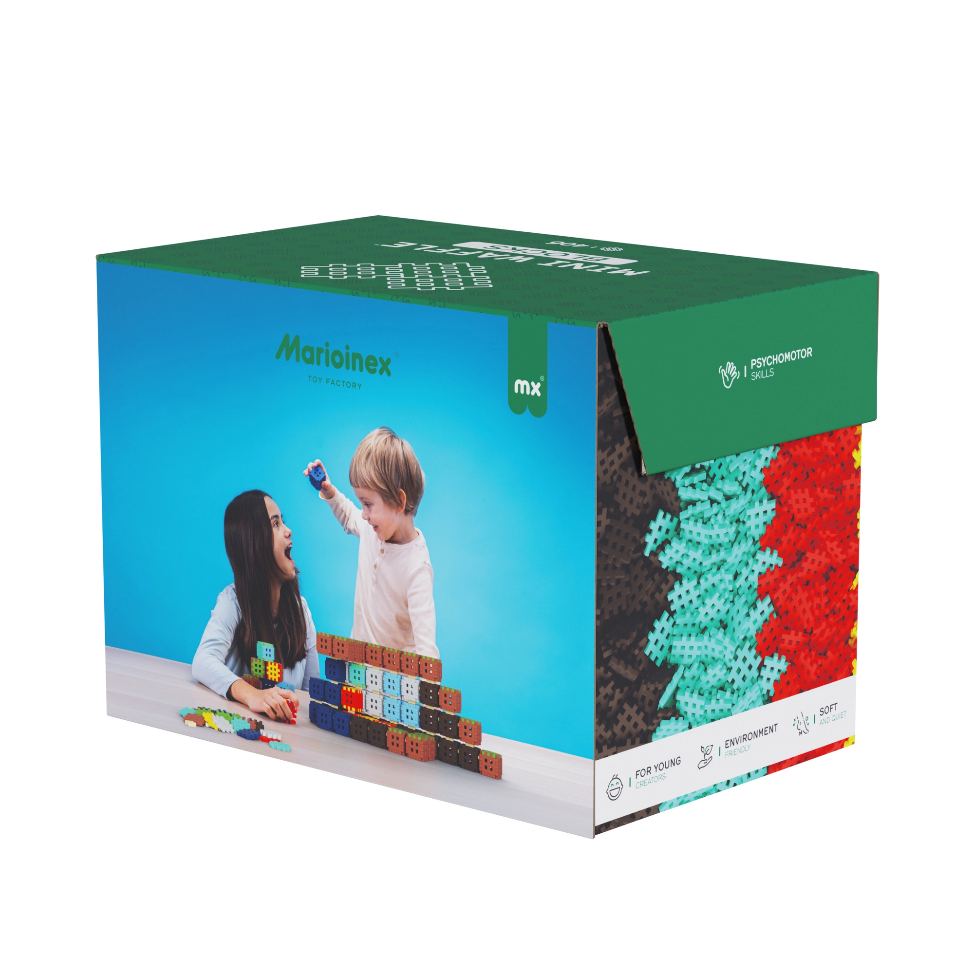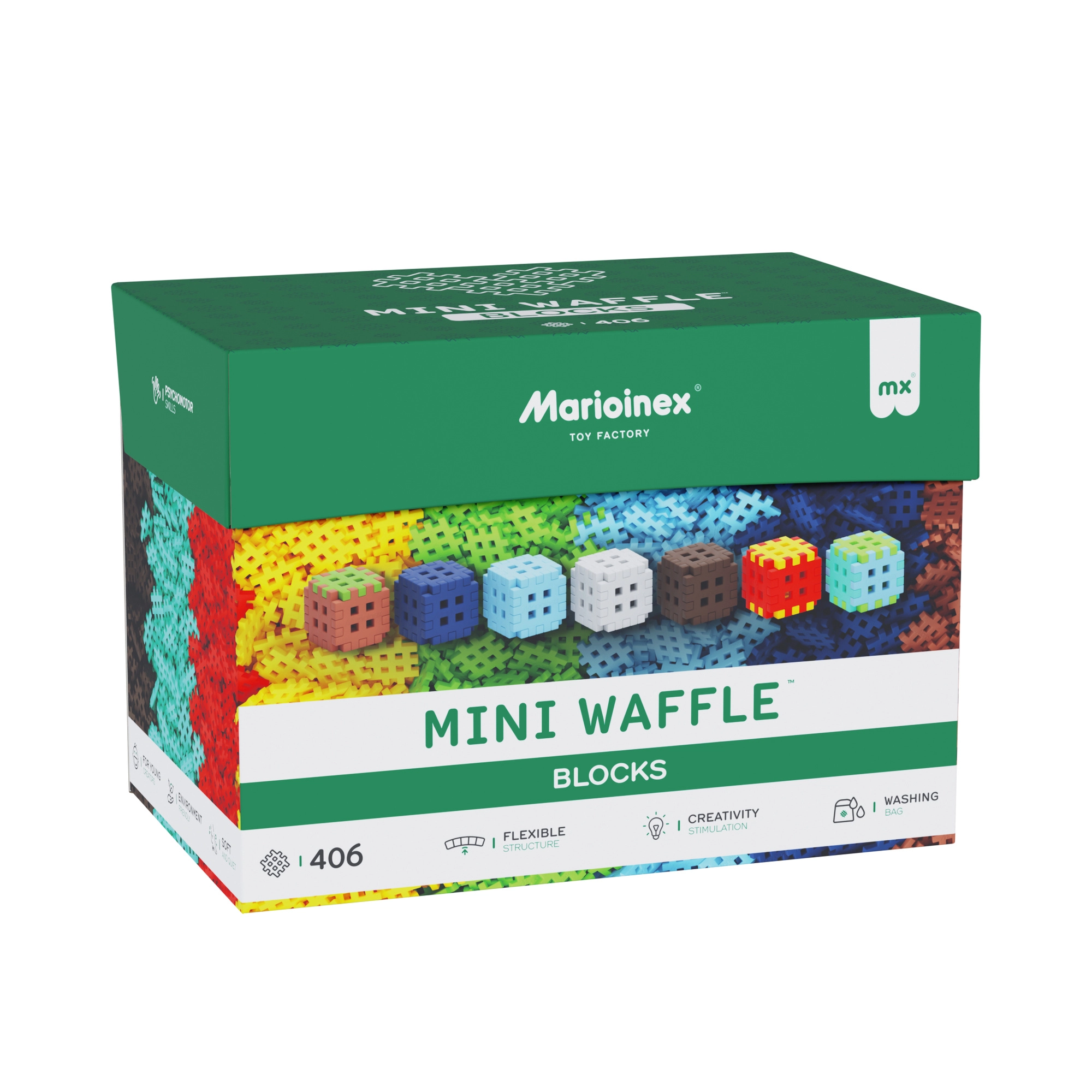 Stavebnica Marioinex Mini Waffle Blocks je navrhnutá pre radosť z voľného stavanenia – od postavičiek a vozidiel až po originálne stavby. Mäkké a poddajné dieliky v rôznych farbách deti ľahko uchopia a spoja, takže sa rýchlo dostaví úspech a chuť tvoriť ďalej.
