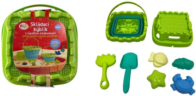 Ľahká a kompaktná sada na piesok aj vodu od PLEJO šetrí miesto a ponúka deťom hodiny zábavy. Skladací silikónový kýblik sa jediným pohybom splošťuje na pár centimetrov, nechýba lopatka, hrabličky a veselé bábovky. Ideálna na pláž, k bazénu, do vane aj na zbieranie mušlí a kamienkov.