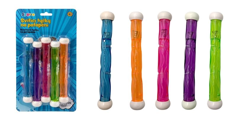 Osvetlite dno bazéna a pridajte potápaniu nový rozmer. Svietiace tyčinky SPORTO sú ideálne na hry vo vode, tréning zadržiavania dychu aj orientácie pod hladinou. Po vhodení klesnú na dno, kde žiaria a lákajú k vyloveniu.