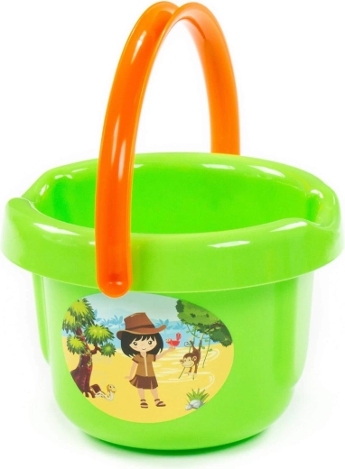 Vedro je dostupné v atraktívnych farbách s veselými samolepkami. Farba je zasielaná náhodne podľa dostupnosti, takže každé balenie prináša malé prekvapenie. Široký okraj a odolné ucho uľahčujú manipuláciu aj menším deťom.