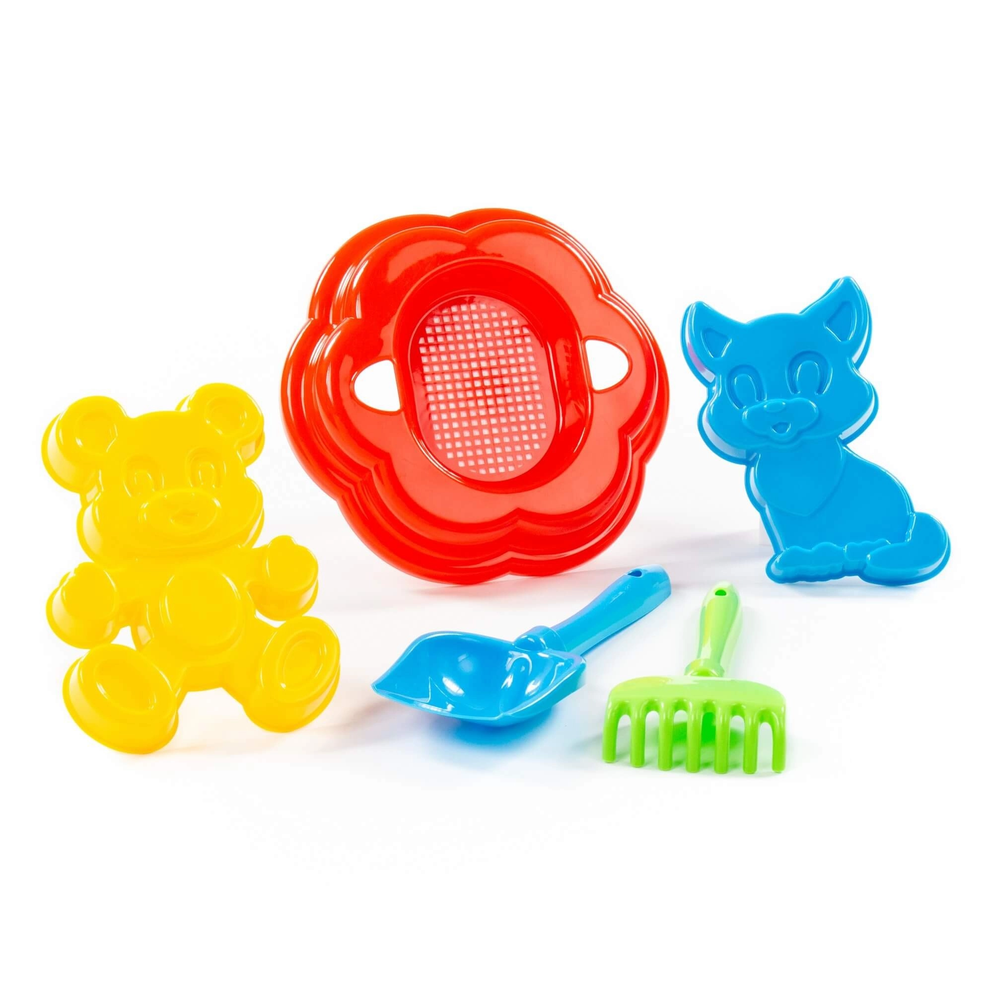 Obsah súpravy: veľké sito v tvare kvetu s úchytmi, lopatka, hrabličky a dve formičky (mačiatko a medvedík). Súprava podporuje jemnú motoriku, kreativitu a hru na čerstvom vzduchu. Farebné varianty sa líšia, konkrétnu farbu nie je možné zvoliť – je odosielaná náhodne podľa dostupnosti.