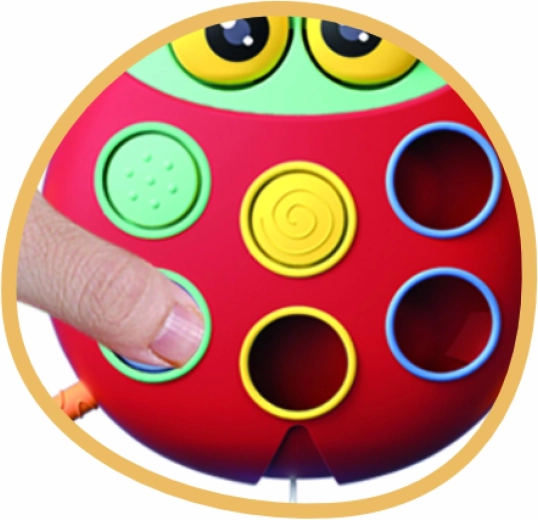 - Interaktívna zábava: stláčacie, otáčacie, ťahacie a hrkajúce prvky.