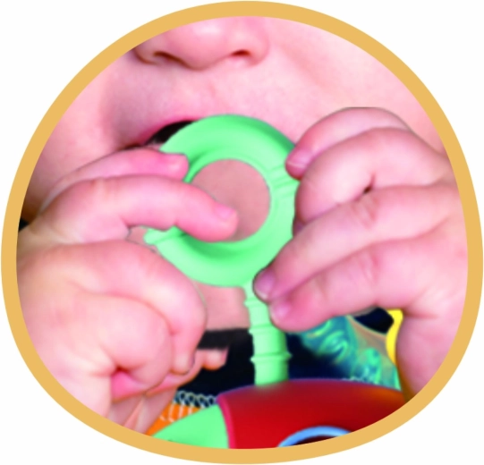 Zaoblené tvary, mäkké kontúry a praktické úchyty uľahčujú držanie a manipuláciu, takže je hračka vhodná pre bábätká už od 6 mesiacov.