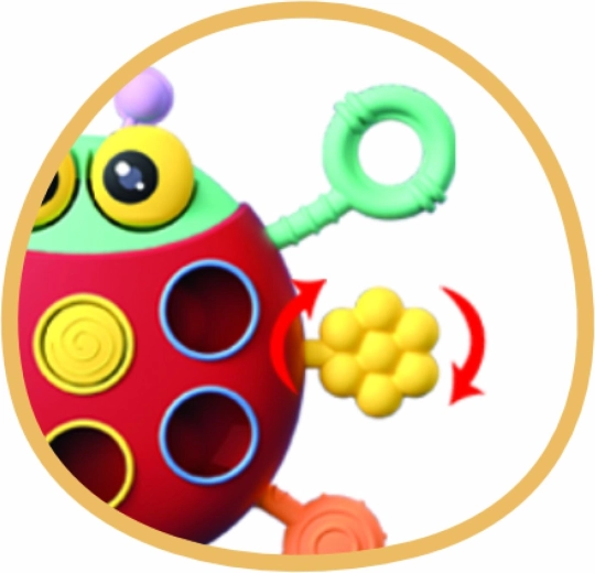 Veselá lienka je ideálna prvá hračka pre malých objaviteľov od 6 mesiacov. Vďaka pestrým farbám, rôznym textúram a pohyblivým prvkom podporuje jemnú motoriku, koordináciu ruka–oko a zmyslové vnímanie. Hračka ponúka stláčacie bublinky, otáčacie a ťahacie prvky aj praktické úchyty na ľahké držanie a zábavné učenie príčiny a následku.