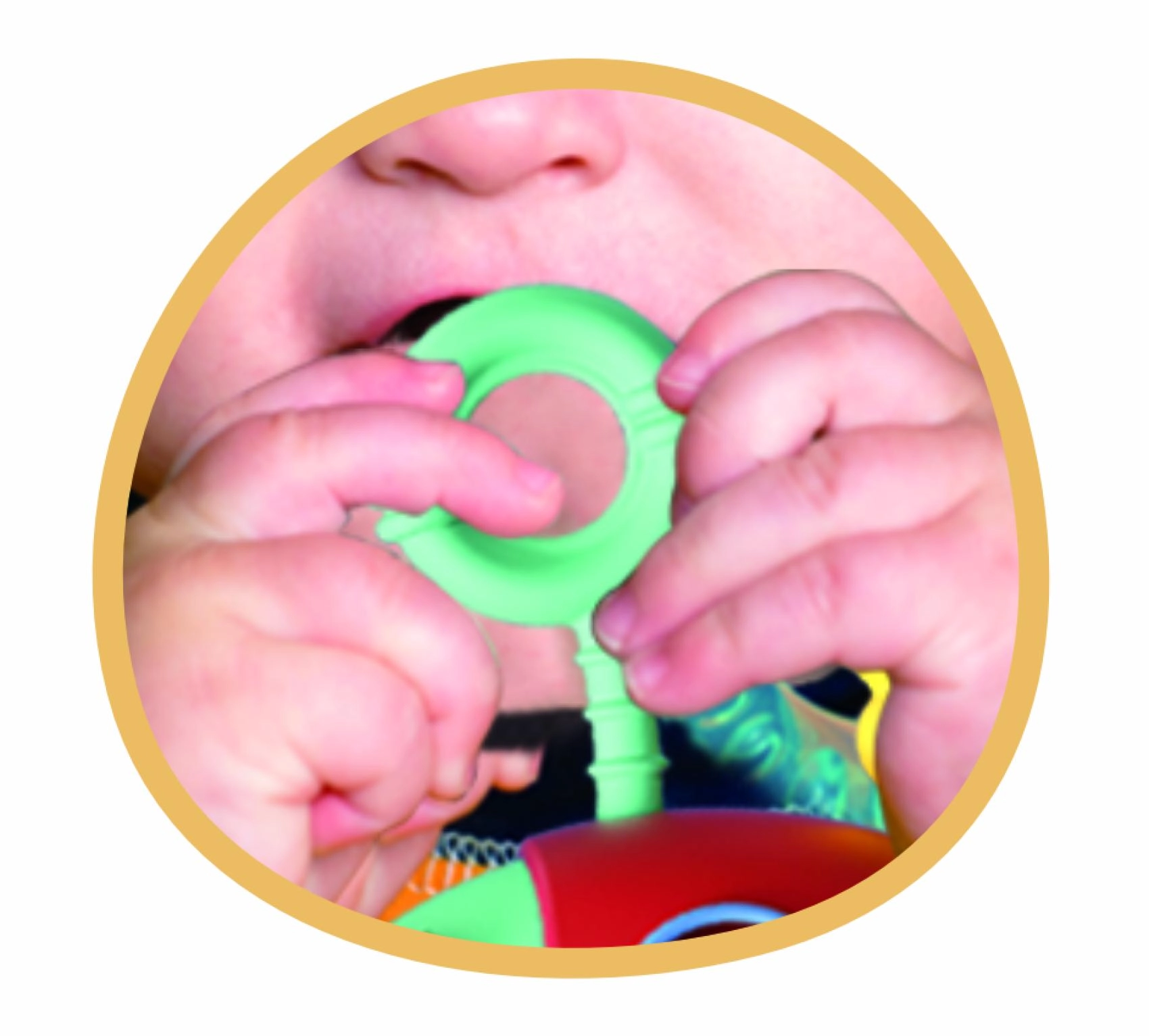 Pružné krúžky a otočné diely podnecujú zvedavosť. Pri ťahaní, otáčaní a naťahovaní si deti trénujú koordináciu ruka–oko aj silu úchopu.