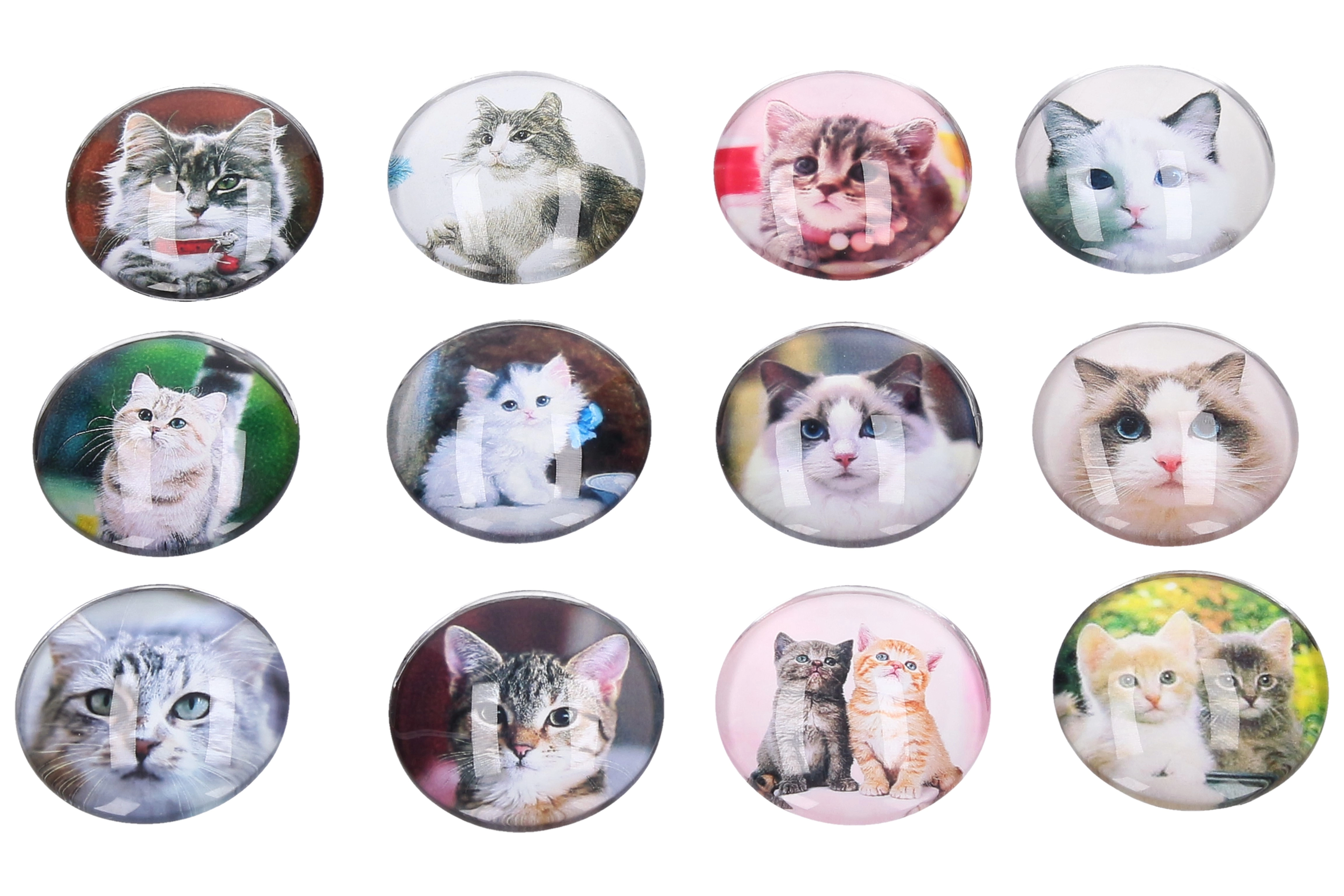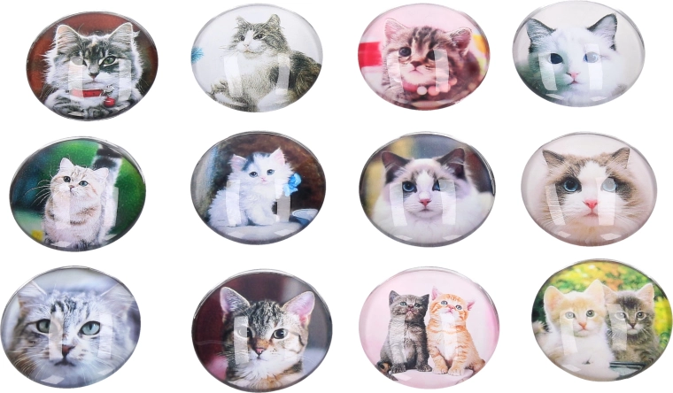Oživte domov alebo kanceláriu štýlovým doplnkom. Tento sklenený magnet s mačkou kombinuje pôvabný dizajn a spoľahlivú funkčnosť. Priemer 4 cm je ideálny na pripnutie lístkov, fotiek či odkazov na chladničku, magnetickú tabuľu alebo kovové police. Každý kus je dodávaný v mixe mačacích motívov, takže každý magnet je malý originál.