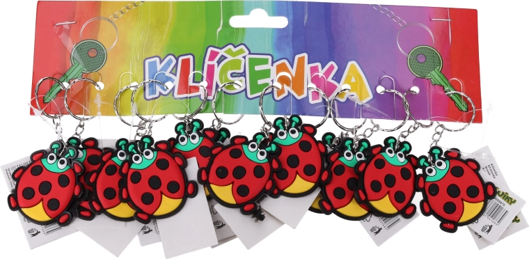- Roztomilý motív lienky – hravý doplnok na kľúče, tašky aj batohy.