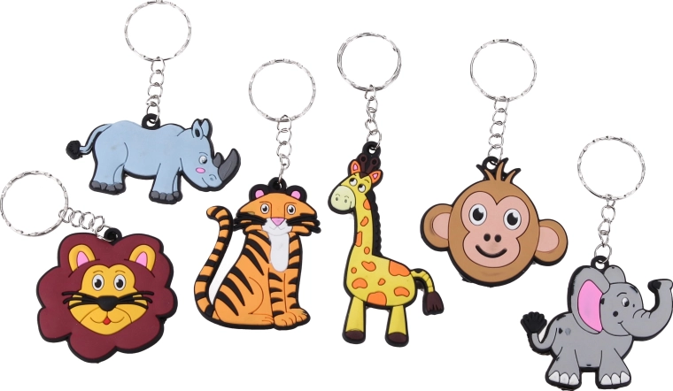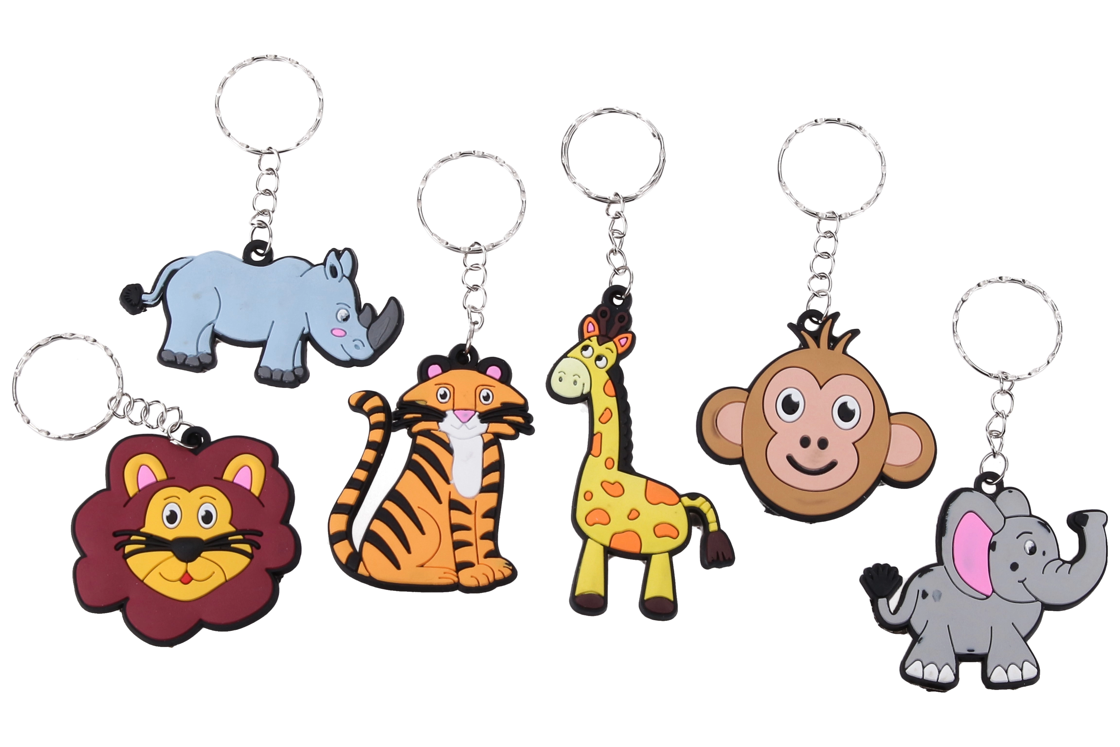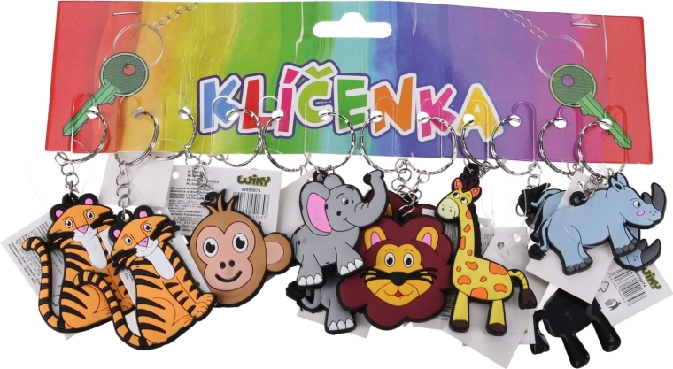 Roztomilý prívesok na kľúče so zvieratkami v praktickom mixe motívov poteší deti aj dospelých. Vyberte si z motívov tiger, opica, slon, lev, žirafa a nosorožec. Skvelé ako darček, na kľúče, batoh či peračník. Balenie obsahuje 12 ks na karte.