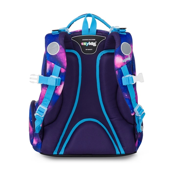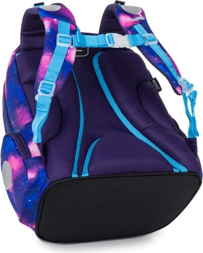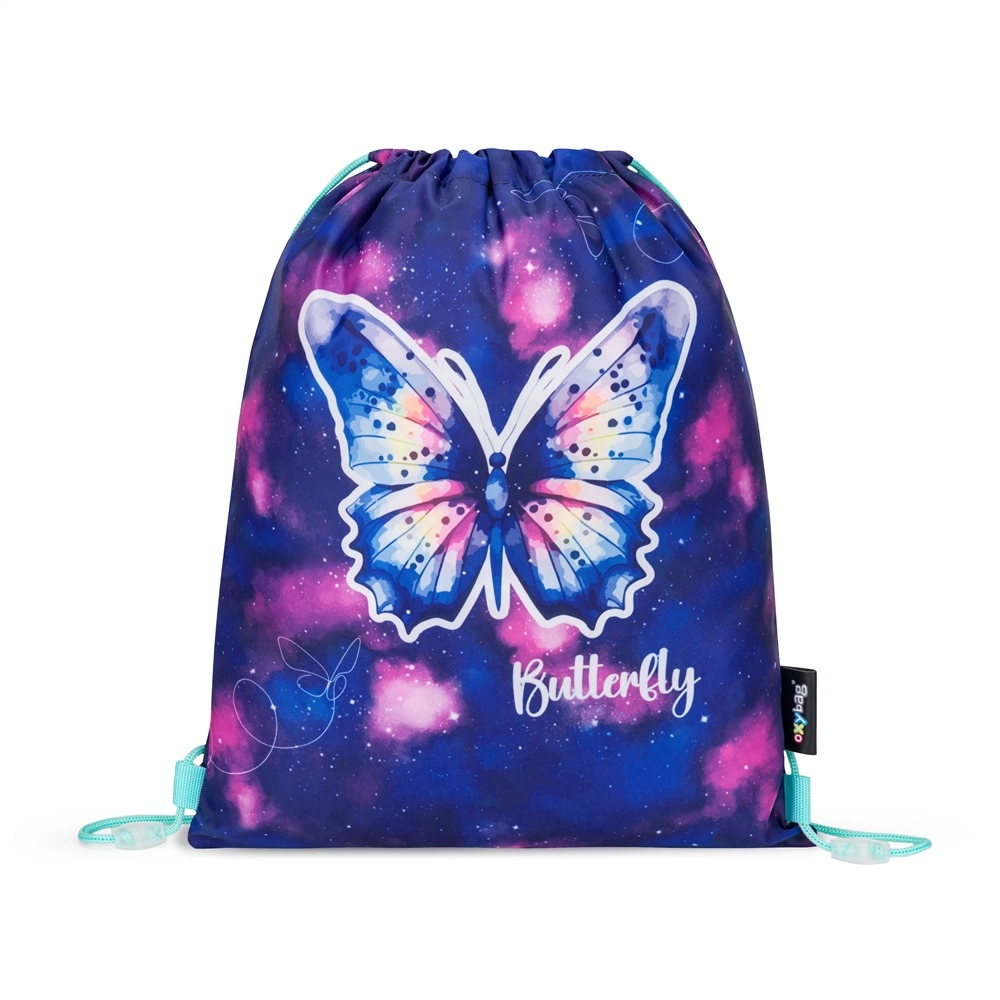 Set Oxy Go Motýľ v galaktickom dizajne s motýľom poteší vzhľadom aj funkčnosťou. Batoh poskytuje pohodlie vďaka ergonomickému, polstrovanému chrbtu a nastaviteľným ramenným popruhom s háčikmi na zaistenie dlhších koncov. Viac komôr a vreciek zabezpečí prehľadné uloženie učebníc, zošitov aj drobností, bočné vrecká pojmú aj fľašu na pitie.