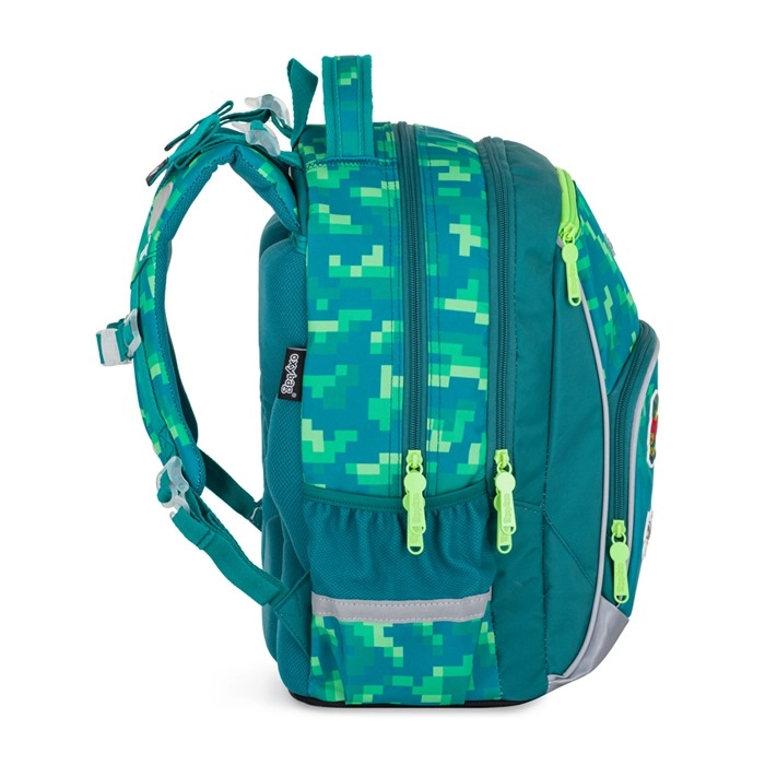 Školský batoh Oxy Go Playworld v modernom pixelovom dizajne je skvelou voľbou pre mladších školákov od výšky 125 cm. Ponúka dve hlavné komory na prehľadné uloženie učebníc a zošitov, bočné vrecká na fľašu aj drobnosti a množstvo menších vreciek pre perfektnú organizáciu. Ergonomicky tvarovaný chrbát s polstrovaním a nastaviteľnými popruhmi zaisťuje pohodlie po celý školský deň.