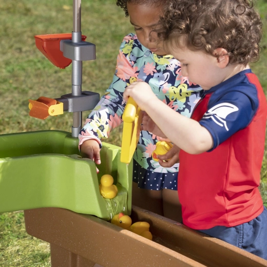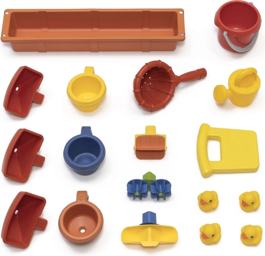 Vďaka nízkej konštrukcii a sklopnému mostíku je stanica prístupná aj menším deťom. Robustný materiál EverTough sa ľahko čistí a je odolný voči nárazom. Sada obsahuje 14 ks príslušenstva na naberanie, prelievanie a vodné pokusy, takže zábava aj učenie princípov toku, príčiny a následku nikdy nekončí.