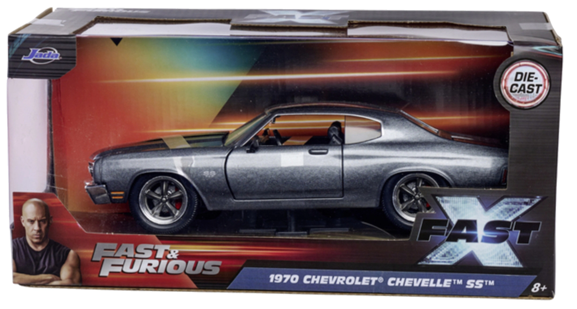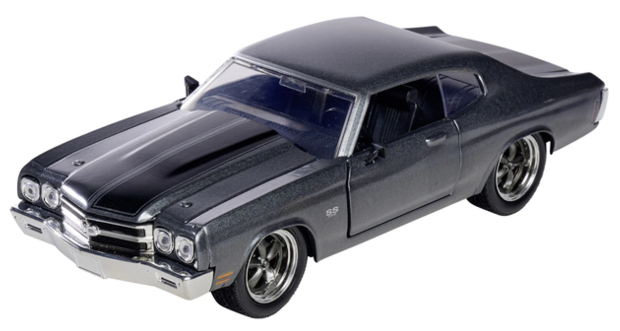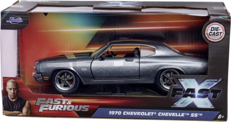 Detailne spracovaný zberateľský model od značky Jada Toys inšpirovaný ságou FAST & FURIOUS. Ponúka kovovú karosériu, otváracie dvere a kufor a verné proporcie kultového vozidla 1970 Chevrolet Chevelle SS s dĺžkou 19 cm – ideálne pre fanúšikov filmov aj ako štýlová dekorácia.