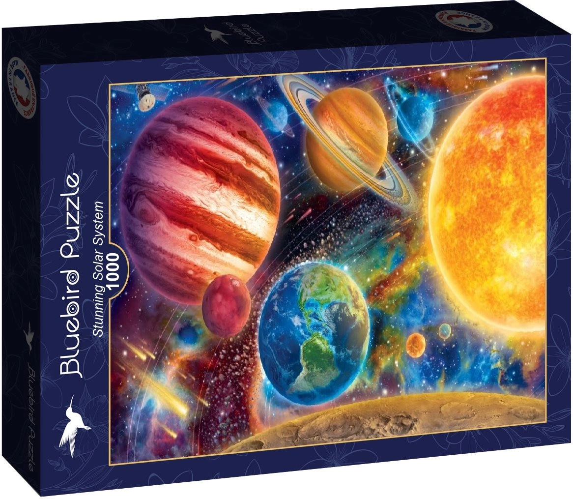 Vstúpte do fascinujúceho sveta vesmíru s puzzle, ktoré znázorňuje našu slnečnú sústavu v pôsobivých farbách a detailoch. Vďaka 1000 dielikom si užijete dlhé hodiny zábavy a relaxu a po poskladaní získate dekoratívny obraz ideálny na zarámovanie.