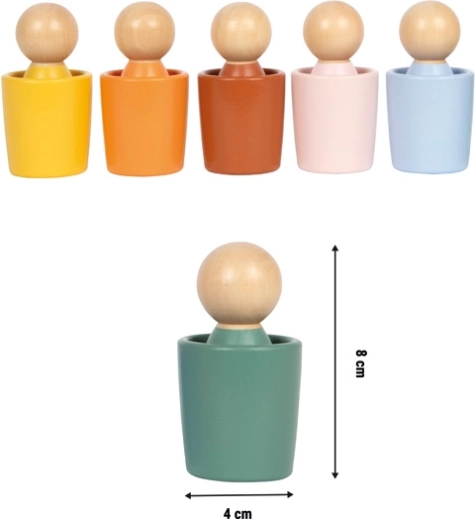 Objavujte farby a jemnú motoriku s montessori sadou od small foot: 6 farebných kalíškov a 6 ladiacich drevených figúrok zo 100% FSC® certifikovaného dreva. Skvelé na triedenie, stohovanie a voľnú hru, ktoré podporujú koordináciu ruka-oko, sústredenie a kognitívny rozvoj už od 12 mesiacov.