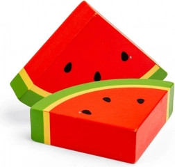 Živé farby a detaily melóna motivujú deti k uchopeniu a k rolovým hrám v kuchynke či obchode.