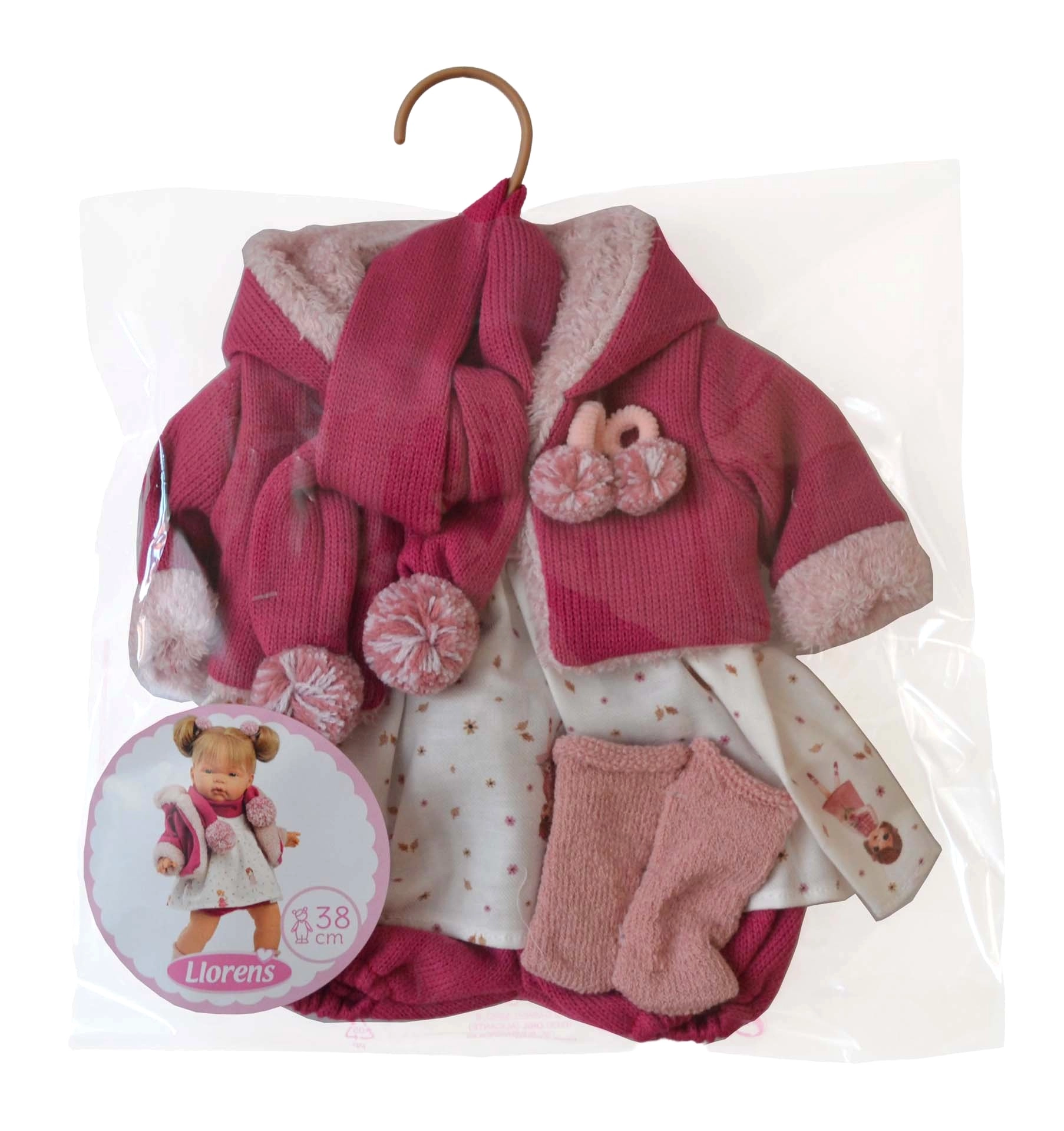 Doprajte svojej bábike Llorens veľkosti 38 cm nový štýl s touto zimnou ružovou sadou oblečenia. Ručne vyrobené v Španielsku, set obsahuje 6 dielov pre kompletný outfit: kabátik, šaty, šál, čiapočku s brmbolcami, ponožky a ozdobné gumičky. Praktické balenie s ramienkom uľahčí ukladanie a prezliekanie. Ideálne na kreatívnu hru a rozvoj jemnej motoriky detí od 3 rokov.
