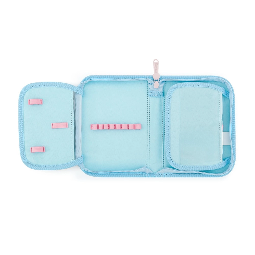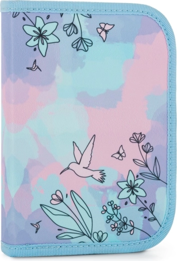 Súčasťou balenia je jednoposchodový peračník s úchytmi a sieťovaným vreckom a ľahký sťahovací vak – všetko v harmonickom pastelovom motíve s kolibríkmi.