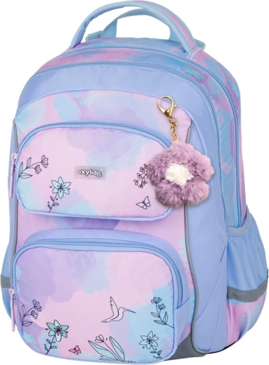 Dizajn v pastelových tónoch s motívom kolibríkov a kvetín zaujme deti aj rodičov. Odolné materiály, zosilnené nepremokavé dno a množstvo reflexných prvkov zaisťujú dlhú životnosť a vyššiu viditeľnosť. Súčasťou je jednoposchodový peračník s úchytmi na písacie potreby a sieťovaným vreckom na zips a tiež praktický vak na prezuvky alebo športové vybavenie v rovnakom motíve.