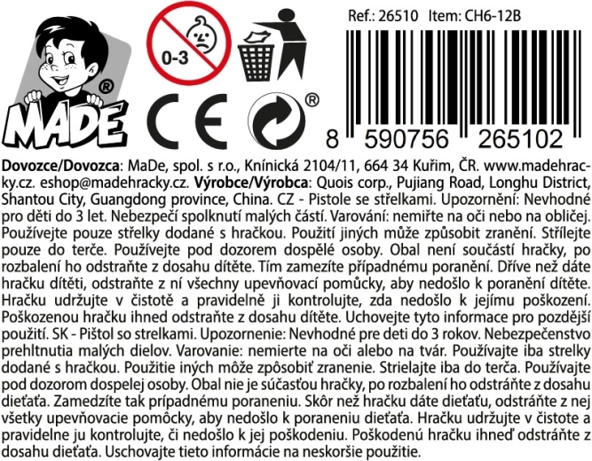 Zábavná detská pištoľ so strelkami s dĺžkou 28,5 cm prináša bezpečnú akčnú hru pre chlapcov od 3 rokov. Vďaka ľahkému plastovému prevedeniu a jednoduchému ovládaniu je ideálna na hravé popoludnia plné dobrodružstiev. Dodávaná v otvorenom boxe pre rýchle vybalenie a okamžité hranie.