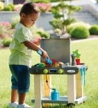 Rozvíjajte detskú fantáziu s detailne prevedeným plynovým grilom s vekom a praktickým stolíkom na kolieskach. Vďaka bohatému setu doplnkov si malí kuchári vyskúšajú prípravu obľúbených jedál a užijú si hodiny zábavy. Kompaktné rozmery a stabilná konštrukcia zabezpečujú pohodlné používanie v interiéri aj vonku.
