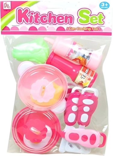 Obsah balenia typicky zahŕňa hrnčeky s viečkom, kuchynské náradie (napr. lyžice, naberačky) a potraviny na hranie, ktoré umožňujú vytvárať realistické scénky z kuchyne. Vďaka bezpečnému spracovaniu je sada vhodná na každodenné hranie.
