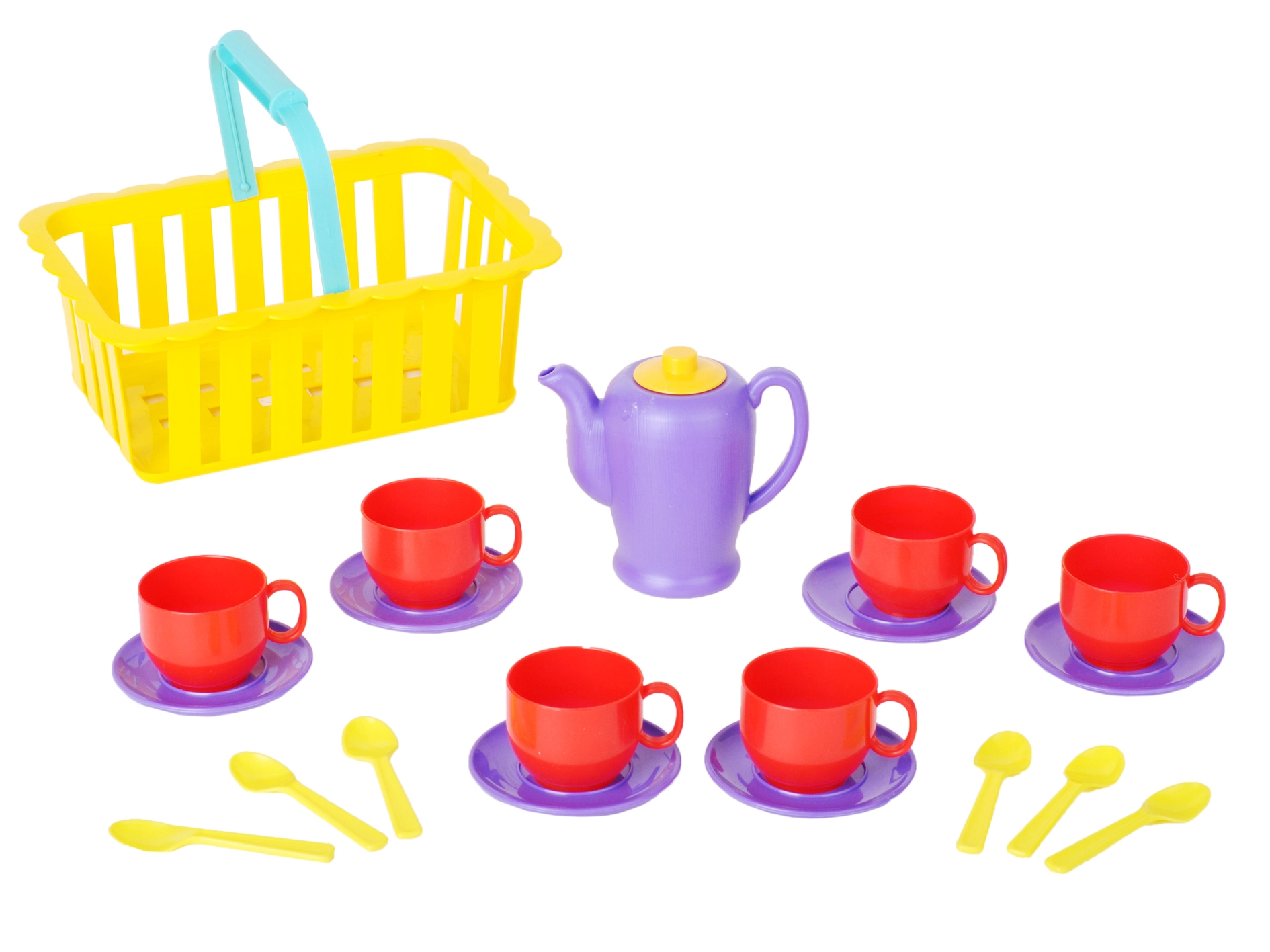 Roztomilý čajový set v praktickom košíku poteší všetky malé gazdinky. Obsahuje kanvičku, šálky s podšálkami a lyžičky na zábavné hranie sa na čajový posiedok. Vďaka ľahkému plastu a košíku je celý set ľahko prenosný, bezpečný pre deti a ideálny na spoločenskú hru s kamarátmi.