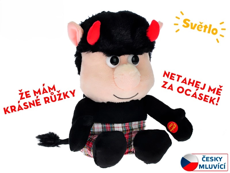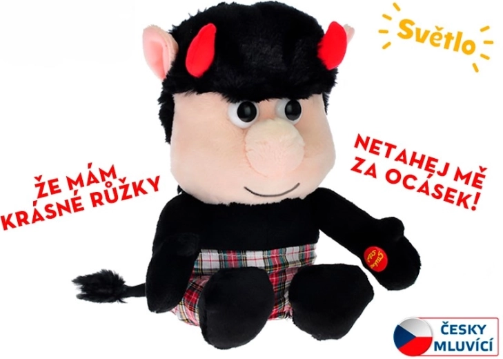 Privítajte do detskej izbičky veselého spoločníka – čertíka menom Rudla. Táto hebká plyšová hračka po stlačení ručičky hovorí po česky a jej rožky pritom zábavne blikajú. Vďaka kompaktnej veľkosti 20 cm je skvelá na hranie doma aj na cesty.