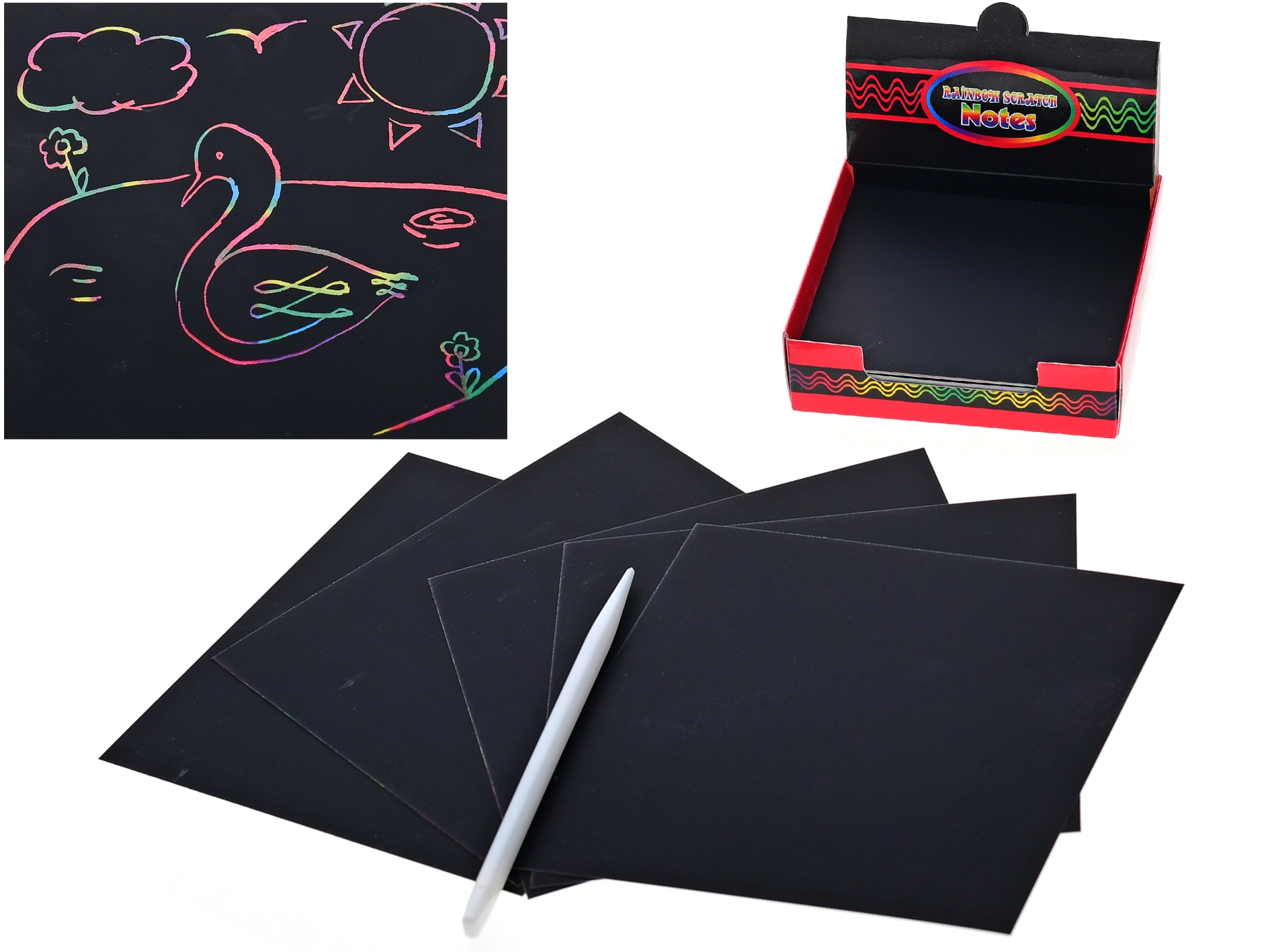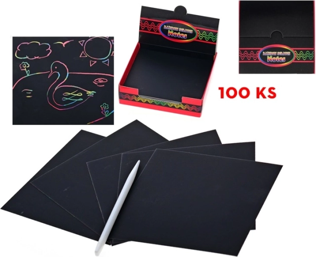 Táto sada vyškrabovacích obrázkov je skvelou voľbou pre deti od 7 rokov, ktoré rady tvoria a objavujú nové techniky. Pod čiernou vrstvou sa ukrývajú pestré farby, ktoré sa postupným vyškrabávaním premietajú do veselých motívov, nápisov a ilustrácií. Vďaka priloženej bambusovej ceruzke je práca jednoduchá, čistá a bezpečná.