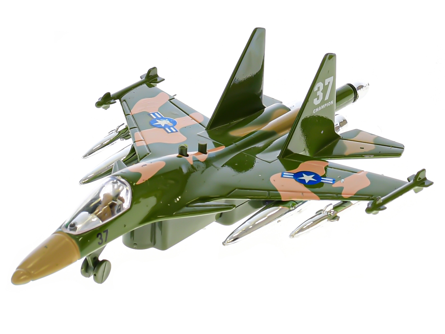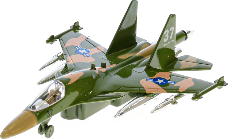 Toto detailne spracované vojenské lietadlo je ideálne pre malých fanúšikov letectva. Stačí natiahnuť, pustiť a vďaka spätnému pohybu sa rozbehne ako skutočný stroj. Po stlačení tlačidla lietadlo bliká a spúšťa zvuk štartovania, čo umocňuje zážitok z hry.