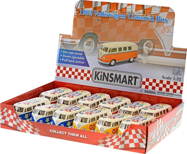 Objavte ikonický štýl dodávky VW z roku 1962 v vreckovom prevedení. Tento kovový model od Kinsmart v mierke 1:32 ponúka autentické detaily, spätný natahovací mechanizmus na jazdu vpred a otváracie pravé dvere. Vďaka kombinácii kovu a plastu je odolný, pritom výborne spracovaný – ideálny pre zberateľov aj deti od 3 rokov.