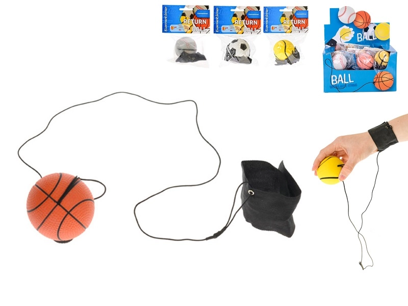 Zábavná hračka pre deti aj dospelých: vracajúca sa loptička GAMETIME s priemerom 60 mm je pripevnená na elastickej šnúrke so zápästným pásikom, takže sa po hode vždy vráti. Skvelé na tréning koordinácie, reflexov a bezpečnú sólo hru bez strácania loptičky. K dispozícii v prevedení tenis, futbal, basketbal a baseball. Vhodné od 6 rokov.