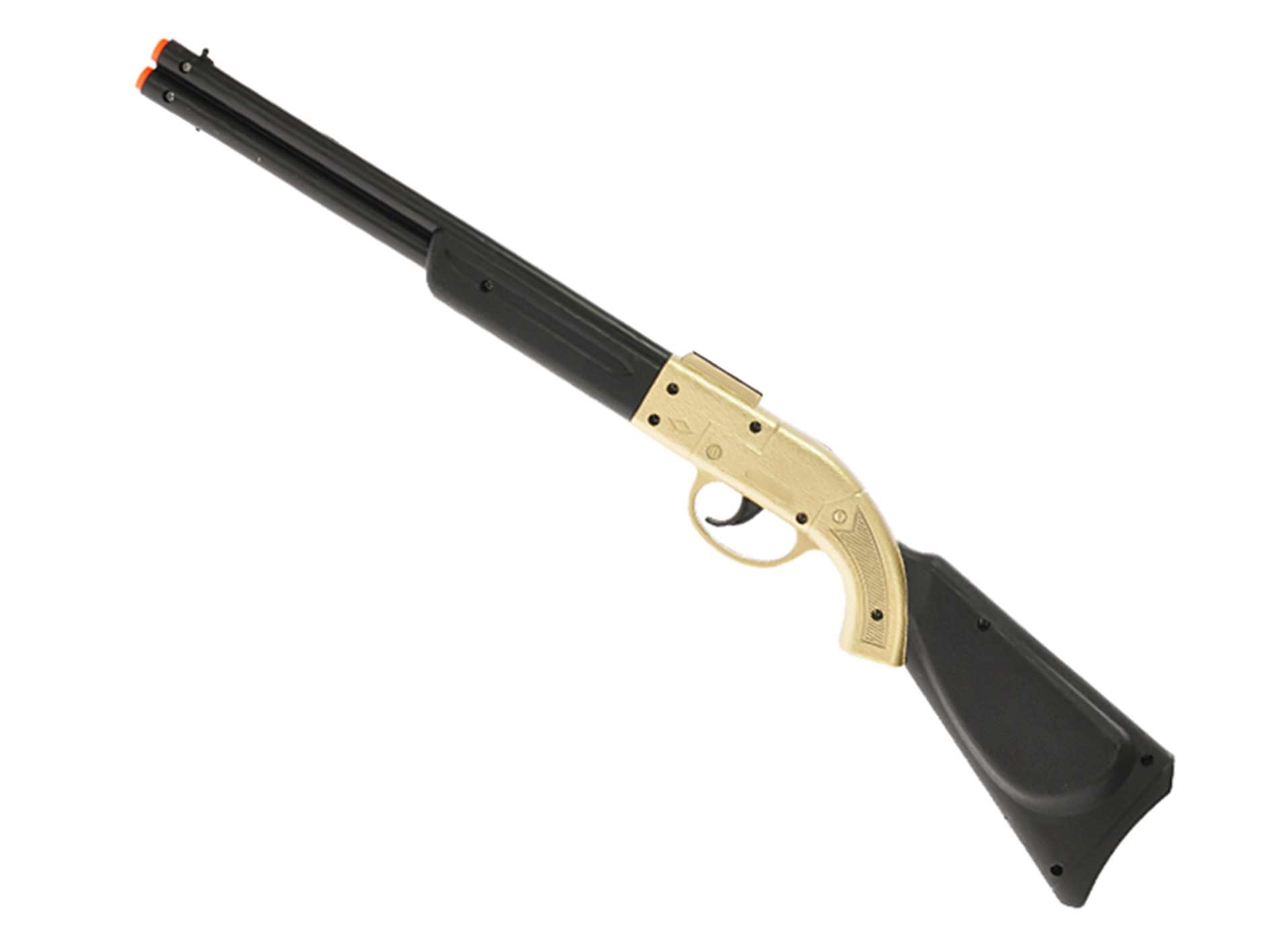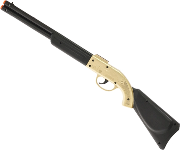 Zábavná kovbojská cvakacia puška s dĺžkou 50 cm v atraktívnom zlatom prevedení poteší všetkých malých dobrodruhov. Vďaka realistickému dizajnu, cvakajúcemu zvuku pri stlačení spúšte a ľahkej plastovej konštrukcii podnecuje detskú fantáziu a ponúka hodiny bezpečnej zábavy už od 3 rokov.