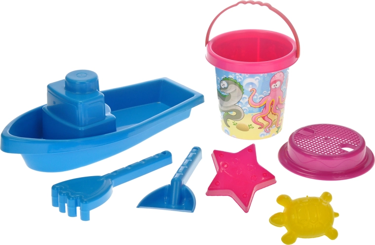 Komplet je vyrobený z odolného, zdravotne nezávadného plastu, ktorý znesie aj intenzívne detské hranie. Diely sú ľahké, dobre padnú do detskej ruky a ľahko sa čistia. Loďka poteší pri vodných hrách, zatiaľ čo vedierko, lopatka, hrable a sitko sa postarajú o dokonalé pieskové výtvory.