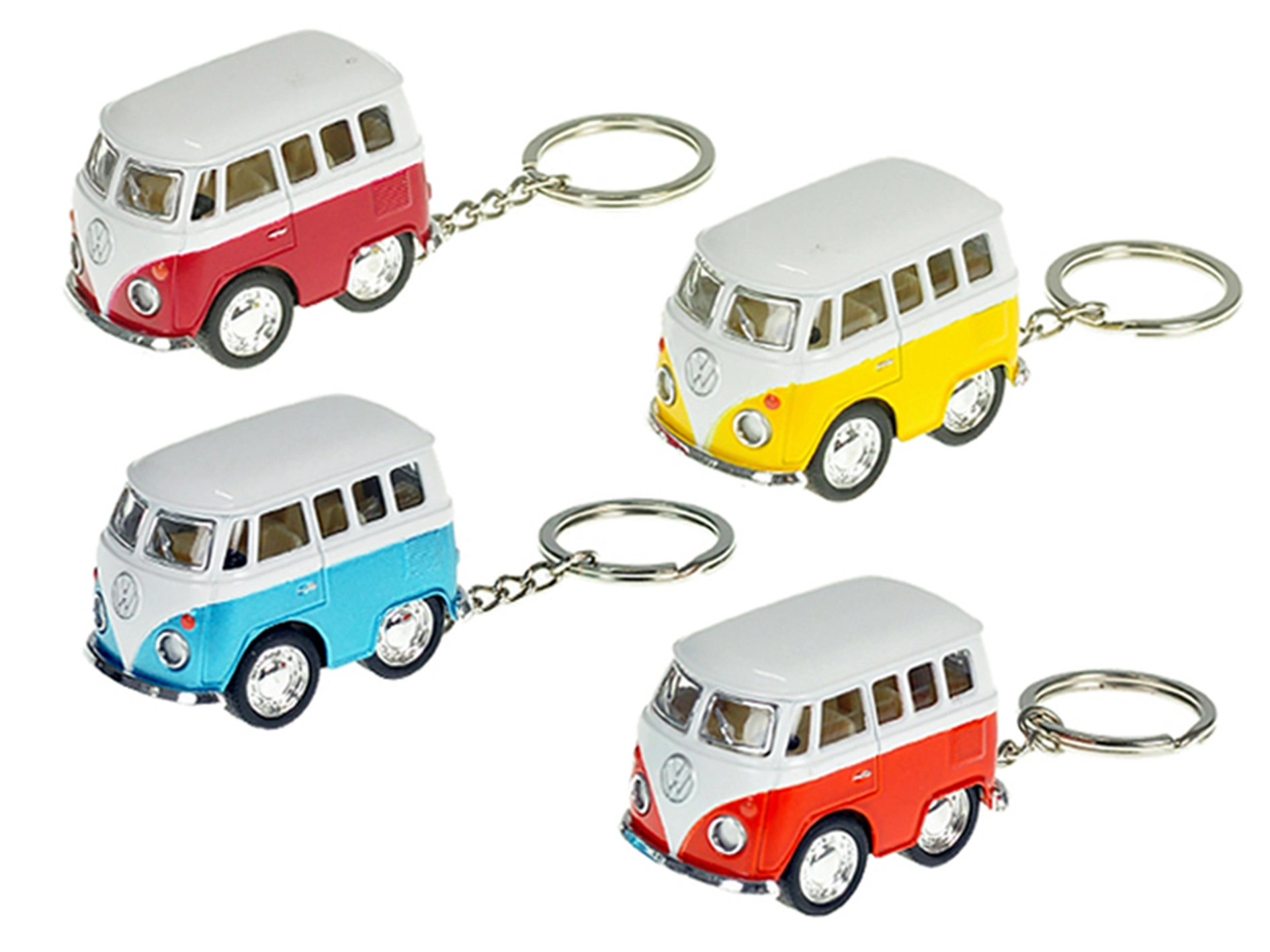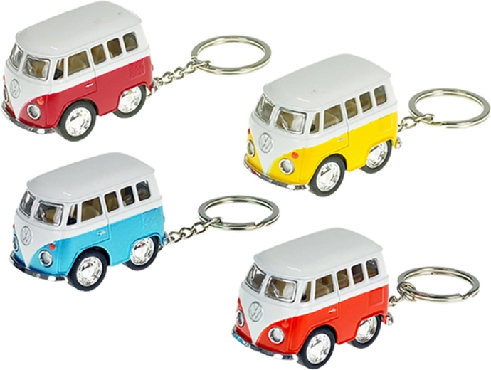 Štýlový prívesok na kľúče v tvare ikonického Volkswagen mikrobusu poteší deti aj dospelých. Detailne spracovaný model s dĺžkou 5 cm kombinuje odolný kov a plast a vďaka spätnému chodu sa po natiahnutí sám rozbehne vpred. K dispozícii v štyroch farbách – červenej, modrej, žltej a oranžovej.