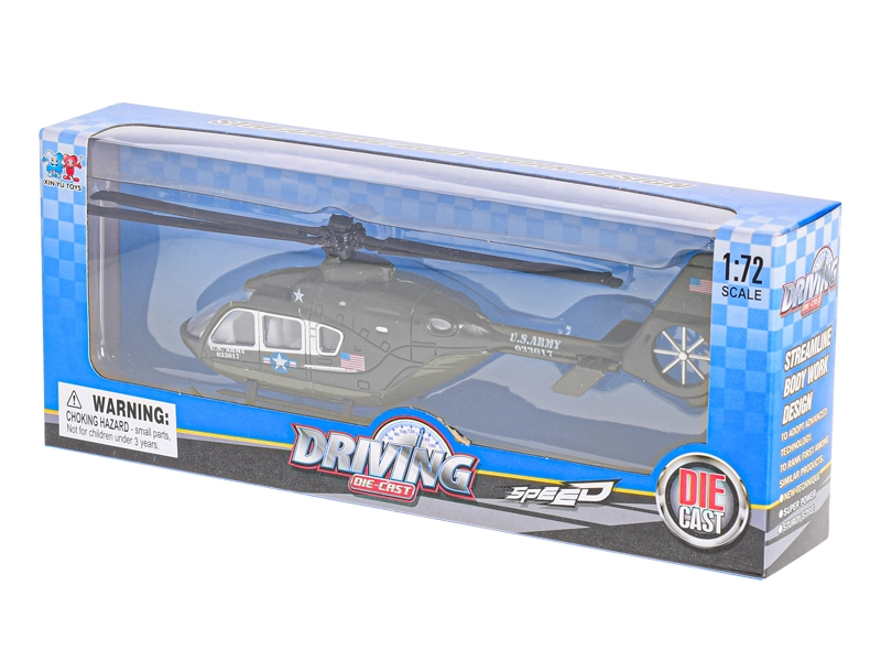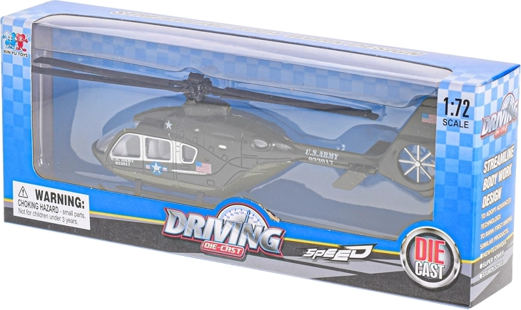 Objavte realistický zberateľský kúsok – kovový model helikoptéry v mierke 1:72, ktorý zaujme detailným spracovaním a kvalitnými materiálmi. Ideálny na vystavenie aj hranie, poteší deti od 3 rokov aj dospelých zberateľov. Dostupný v troch atraktívnych farbách. Precízne detaily, odolné prevedenie a autentický vzhľad zaručujú skvelý zážitok.