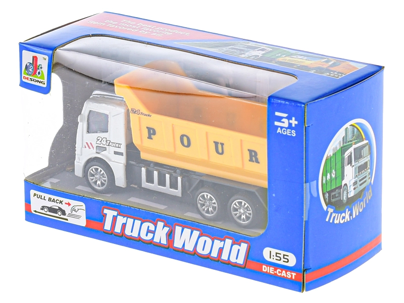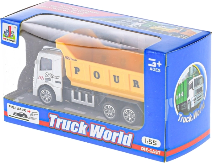 Model sklápacieho nákladného auta v mierke 1:55 s funkčnou korbou a samostatnou jazdou po natiahnutí pre ešte zábavnejšiu hru.