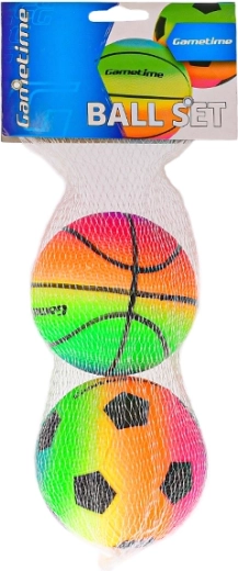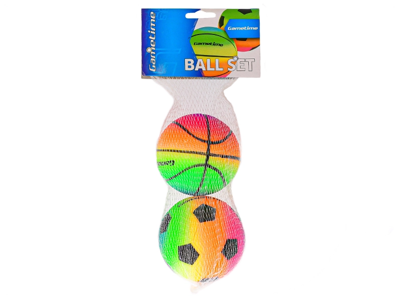 Sada dvoch farebných loptičiek s priemerom 10 cm – futbalová a basketbalová – pre nekonečnú zábavu doma aj vonku. Mäkké a ľahko uchopiteľné, ideálne pre deti. Jasné dúhové farby zvyšujú viditeľnosť a lákajú ku hre, zatiaľ čo kompaktná veľkosť je perfektná pre drobné ruky.