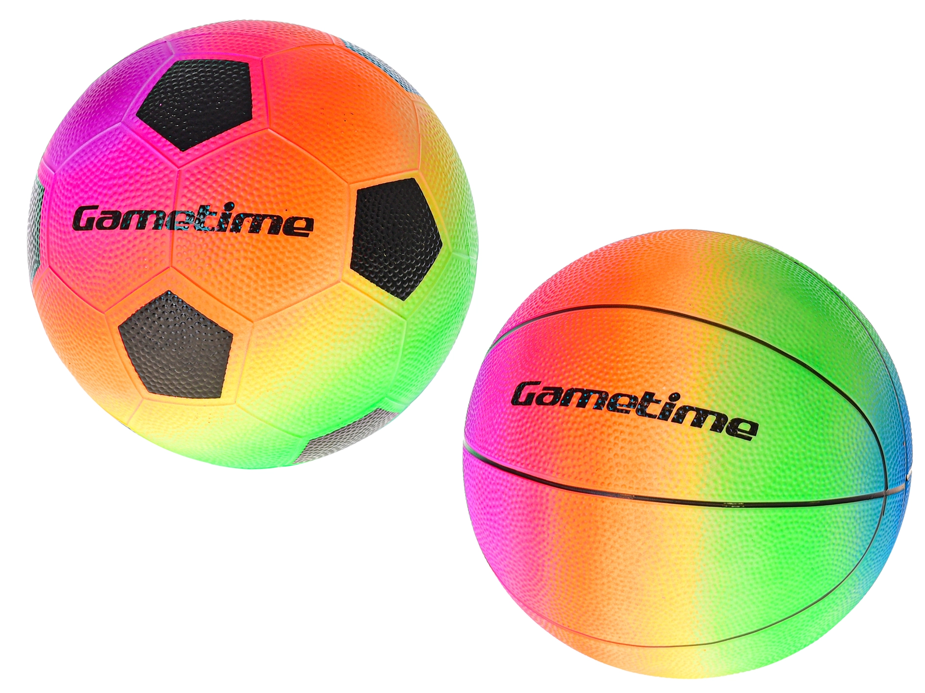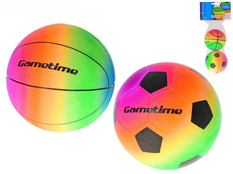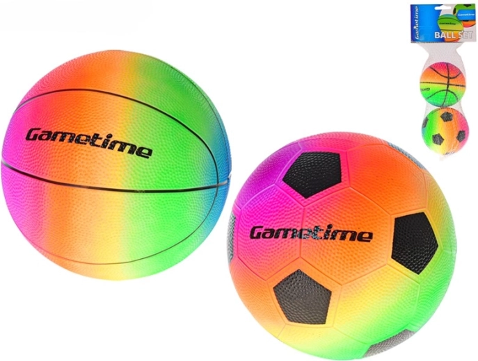 Získajte futbalovú aj basketbalovú loptičku v jednotnom dúhovom štýle – ideálne pre rozmanitú a zábavnú hru kdekoľvek.